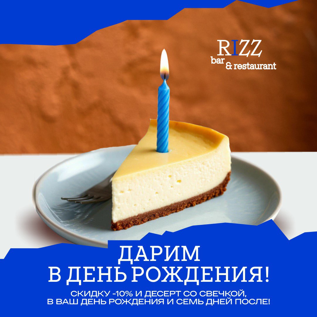 В день рождения (и семь дней после) дарим скидку -10% и десерт со свечкой с поздравлением от команды ресторана!