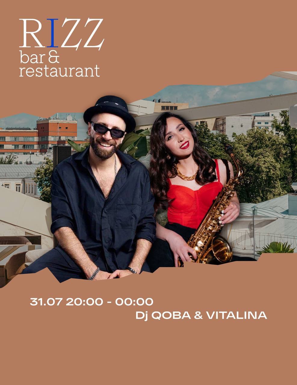 В четверг, 31 июля встречаем летний закат на крыше Rizz под новые коктейли, вокал и саксофон от прекрасной Виталины, а также Dj Coba set!